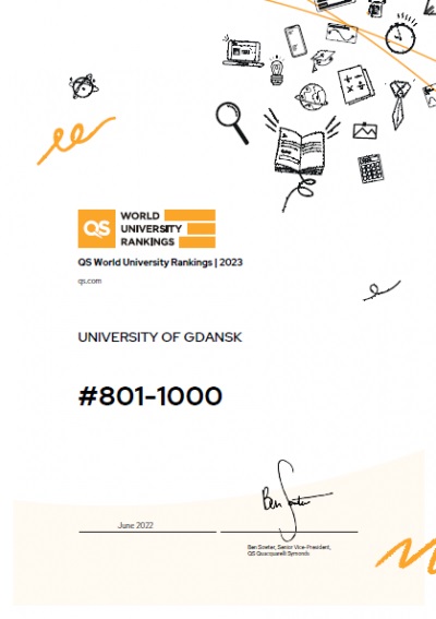 Die Universität Danzig (UG) hat ihre letztjährige Position im QS World University Ranking gehalten. Die Universität wurde im Bereich 801-1000 von 1.422 gelisteten Universitäten aus der ganzen Welt platziert.