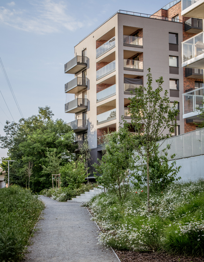 The team created a semi-natural environment using native plants considered to be weeds, thus changing the approach of the aesthetics of public spaces. The used colour scheme is consistent with the tones of the facades of the buildings, the outdoor facilities, the estate alleys and the materials used.