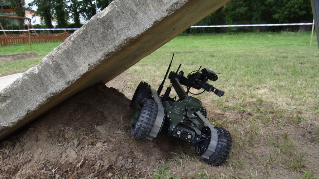 The excellent terrain properties of the PIAP FENIX robot ensure easy movement on paved and dirt roads, off-road, as well as in urban areas and when overcoming obstacles.