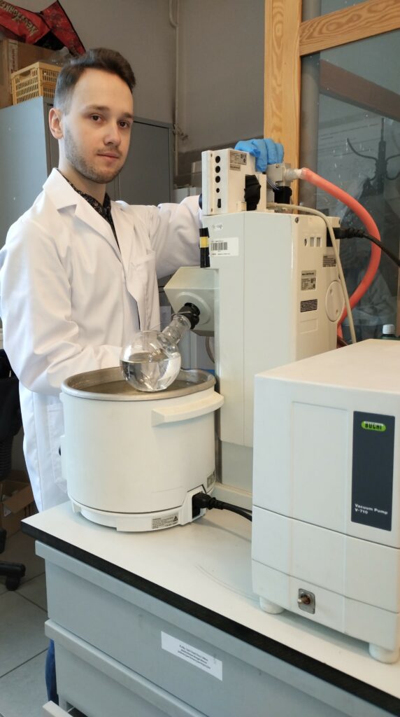 Para purificar el agua de sustancias nocivas, Jakub Łagiewka está desarrollando compuestos químicos a base de ciclodextrinas (un tipo de azúcares). El azúcar, que no se disuelve en agua, podría usarse para absorber estas sustancias: medicamentos, colorantes o pesticidas. El uso de compuestos mencionados también permitiría recuperar fármacos y pesticidas y devolverlos a la industria.