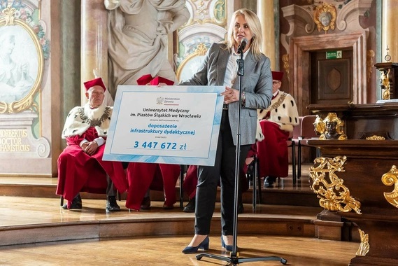 La Faculté de Médecine et d’Odontologie de l’Université de Médecine de Wrocław recevra 24 unités dentaires et 22 tables de laboratoire supplémentaires. L’argent nécessaire à l’achat de ces équipements provient d’une subvention du Ministère de la Santé. Un chèque symbolique de près de 3,5 millions de PLN a été remis par la Ministre de la Santé Katarzyna Sójka lors de l’inauguration de l’année universitaire 2023/2024.