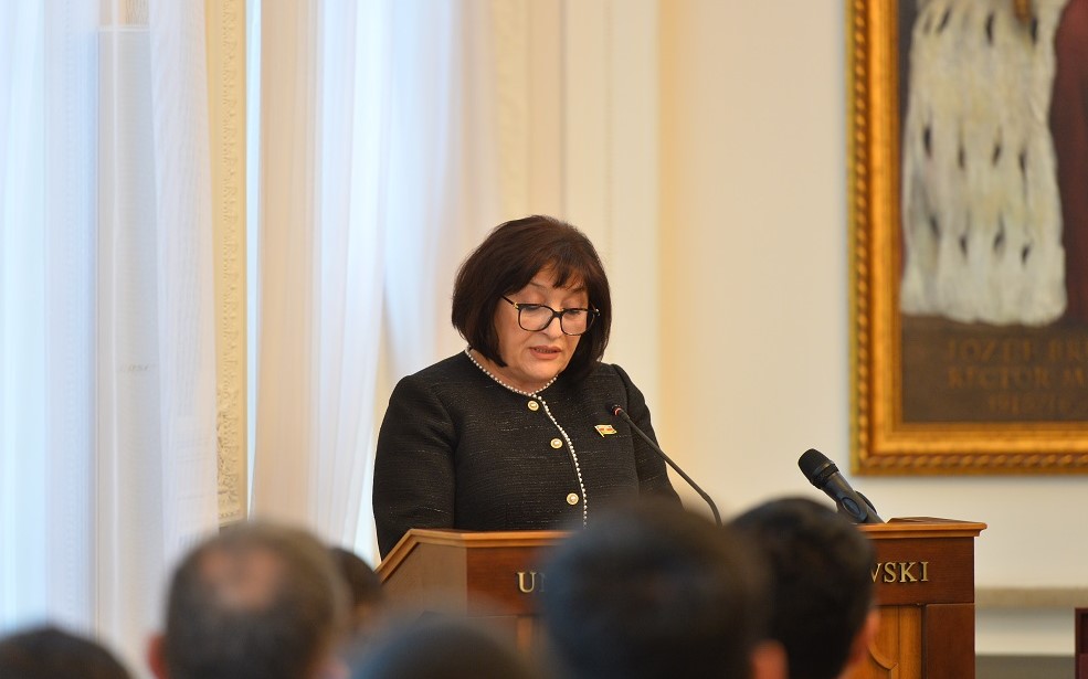 Le professeur Sahiba Gafarova, présidente du Parlement de la République d’Azerbaïdjan, a donné une conférence intitulée « Le dialogue et la solidarité : la vision de l’Azerbaïdjan pour la coopération et le développement » à l’Université de Varsovie (UW). Cette conférence portait sur la perspective de l’Azerbaïdjan concernant son développement et la coopération internationale, y compris la coopération avec les universités et les institutions scientifiques polonaises.