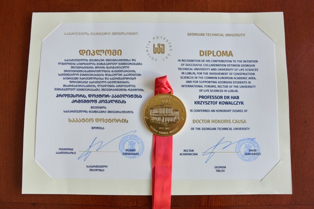 L’Université Technique de Géorgie à Tbilissi a décerné un doctorat honoris causa au recteur de l’Université des Sciences de la Vie (UP) de Lublin, le professeur Krzysztof Kowalczyk.