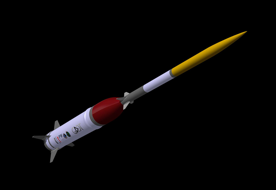 Les principaux éléments de la fusée sont un moteur à propergol solide d’une poussée maximale de 7500 N et un fuselage étroit terminé par une tête en laiton. Le grand moteur est censé accélérer – jusqu’à presque trois fois la vitesse du son – une grand-voile plus petite, qui, grâce à sa grande inertie et sa petite taille, perd sa vitesse à un rythme lent.
