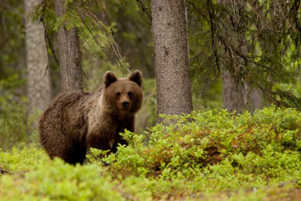 11.06.2015 Finlandia , Tajga , okolice kola podbiegunowego . Biale noce w czerwcu to najlepszy czas na fotografowanie niedzwiedzi n/z Niedzwiedz brunatny ( Ursus arctos ) Fot: Adrian Slazok/REPORTER