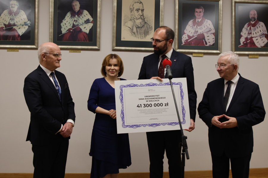 L’Université Jan Kochanowski de Kielce (UJK) a reçu plus de 41 millions de PLN en compensation du transfert de biens immobiliers, de bâtiments et d’infrastructures à la nouvelle Académie de Piotrków. Le chèque symbolique a été remis au recteur de l’université par le Ministre de l’Éducation, Krzysztof Szczucki.