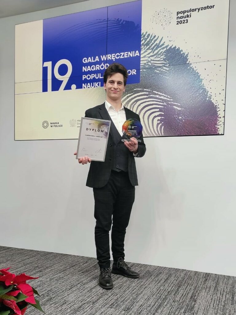Le jury du concours « Populariser la science » a décerné une distinction spéciale à Aleksander K. Smakosz, diplômé de la Faculté de Pharmacie et doctorant au Département de Biologie Pharmaceutique et de Biotechnologie de l’Université de Médecine de Wrocław. Le jeune scientifique a été récompensé pour avoir diffusé des connaissances dans le domaine de la pharmacie et de la médecine.