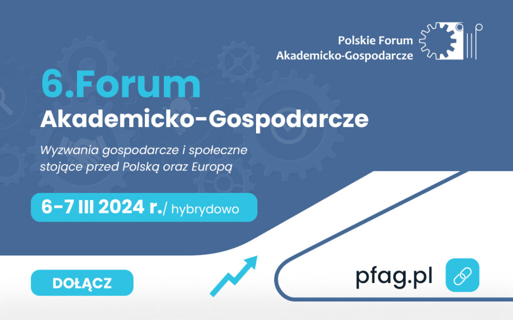 6-7 marca 2024 r. odbędzie się 6. Forum Akademicko-Gospodarcze. Tegorocznej edycji, która będzie miała formułę hybrydową, towarzyszy hasło „Wyzwania gospodarcze i społeczne stojące przed Polską oraz Europą”. Konferencję organizuje Polskie Forum Akademicko-Gospodarcze.