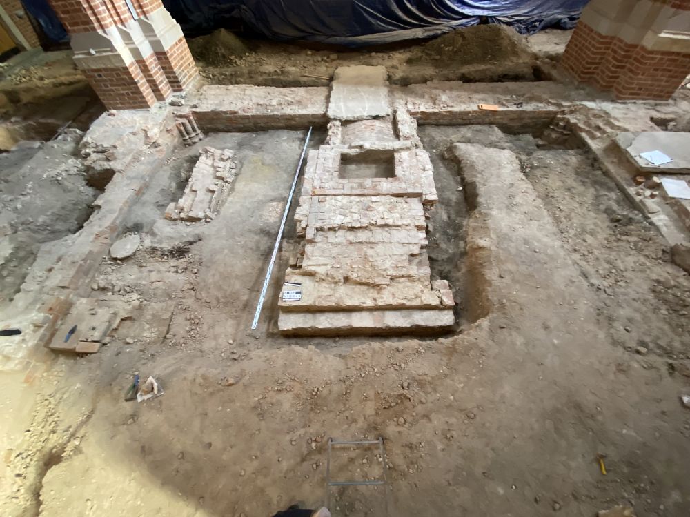 Podczas prac odkryto m.in. ceglane mury tworzące zarys prezbiterium, fragmenty ścian, podbudowę romańskiego ołtarza, schody do krypty oraz fragment ceramicznej posadzki z kwadratowych płytek.