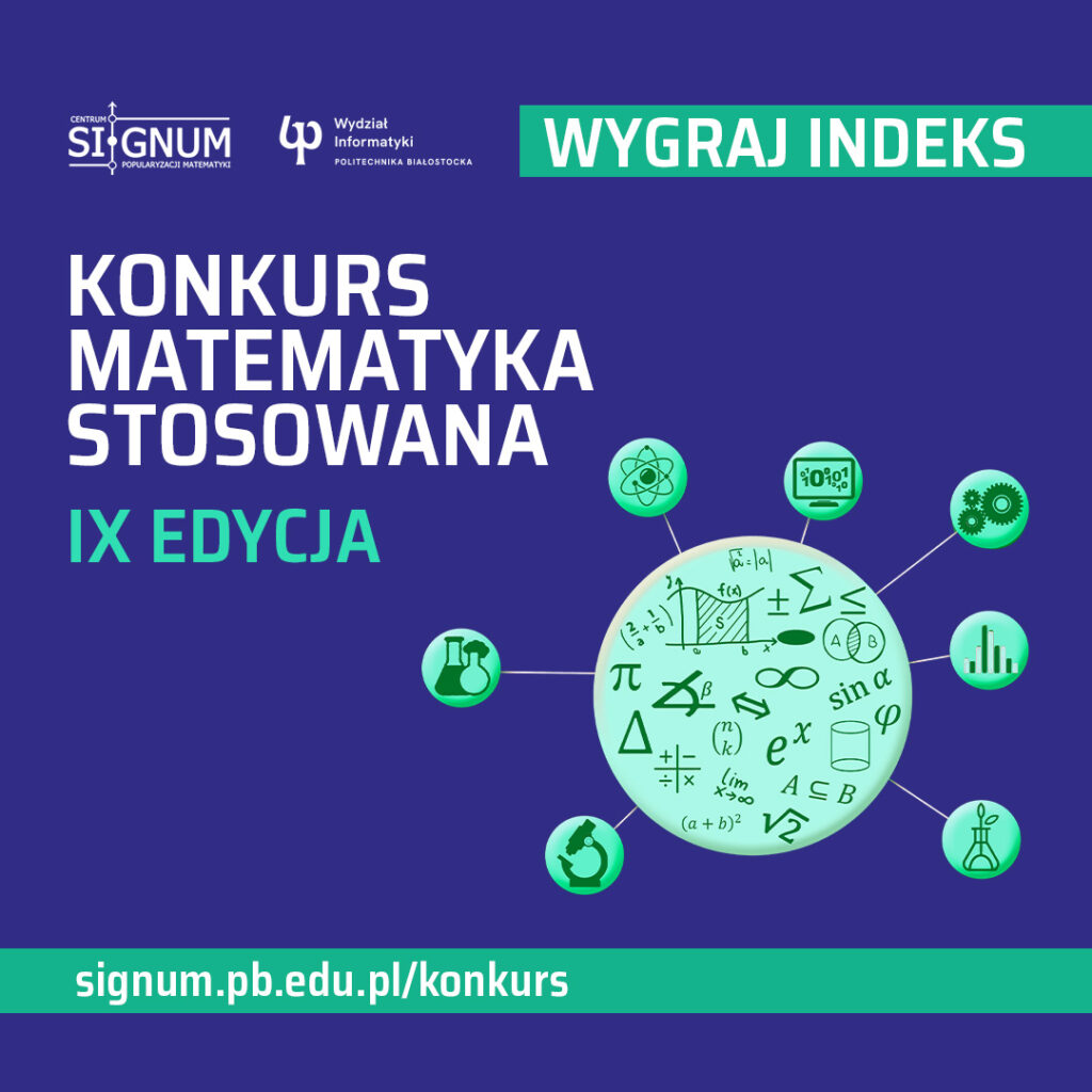 Ruszyła rejestracja uczestników IX edycji Ogólnopolskiego Konkursu „Matematyka stosowana”. Uczniowie szkół średnich mogą w nim wygrać indeks na dowolny kierunek studiów w Politechnice Białostockiej (PB). Zgłoszenia udziału przyjmowane są do 2 lutego 2024 r.