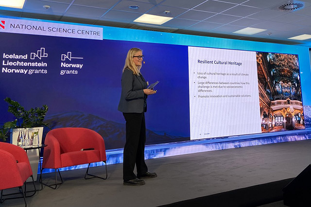 Siv Haugan, przedstawicielka Research Council of Norway, instytucji przedstawicielskiej Darczyńców w programie Badania podstawowe, podczas swojego wystąpienia dodała, że nauki społeczne i humanistyczne są ważnym i docenianym przez Darczyńców obszarem badawczym i przedstawiła możliwości ich finansowania w ramach programu Horizon Europe.