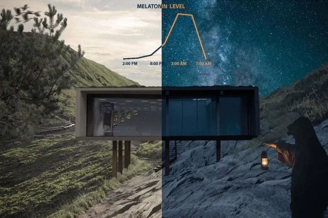 Podczas pracy projektowej laureaci analizowali, w jaki sposób zaprojektować formę budynku, aby ograniczyć zużycie oświetlenia elektrycznego na rzecz oświetlenia dziennego, które wpływa na prawidłowe funkcjonowanie rytmów okołodobowych użytkowników.