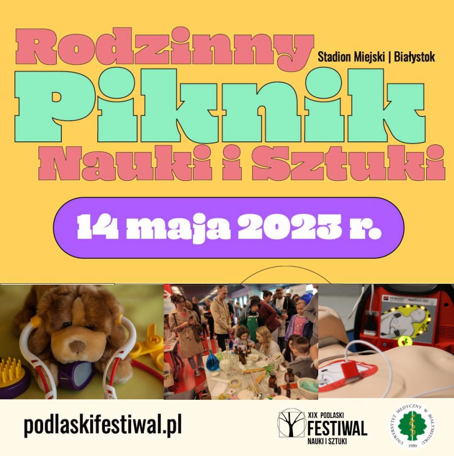 Experimentos, experiências, shows científicos, dicas de saúde, exames preventivos e uma cidade com brinquedos infláveis são as atrações do Piquenique Familiar de Ciência e Arte em Białystok, que acontecerá no dia 14 de maio de 2023 no Estádio da Cidade de Białystok. O evento também abrirá o 19.º Festival de Ciência e Arte de Podlaquia.