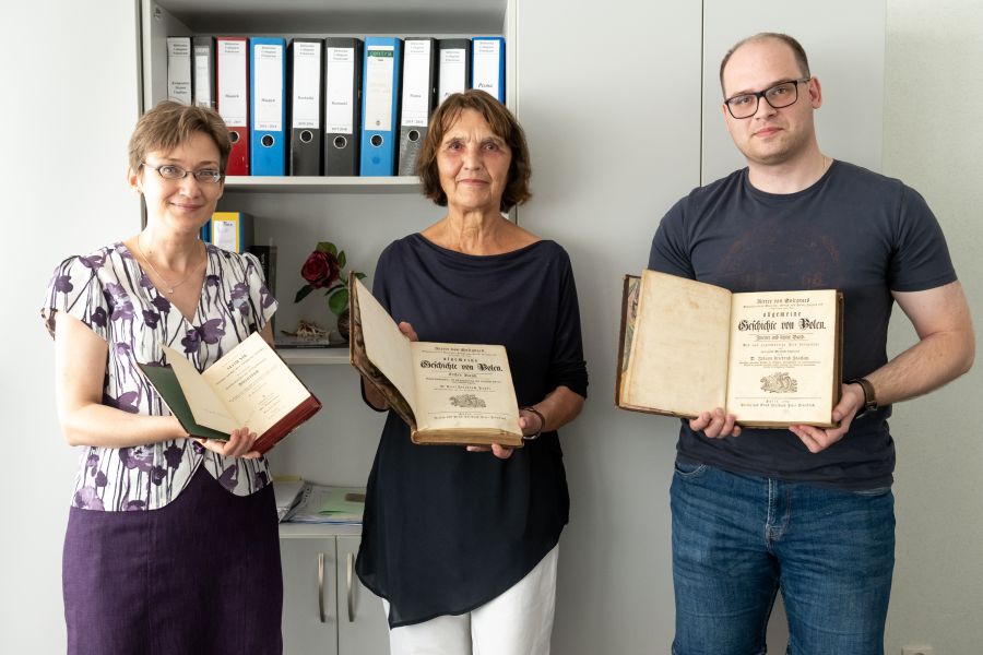 来自柏林的斯拉夫主义者兼翻译芭芭拉·舒曼 (Barbara Schumann) 捐赠给密茨凯维奇大学位于斯武比采的Polonicum 图书馆一本非常有价值的书:德文版的《波兰历史》,由 Knight de Solignac 撰写,Pierre Joseph de la Pimp (1687-1773), Stanisław Leszczyński 国王的秘书。